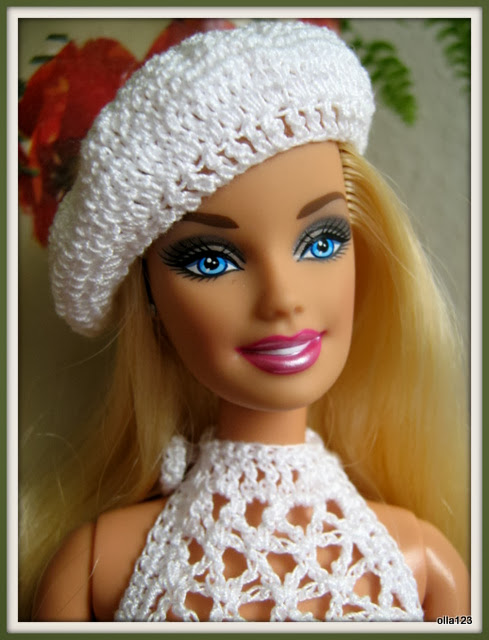 Uznałam, że zaryzykuję i spróbuję wykonać beret z białego kordonka. Zrobiłam go na szydełku z nici "50" a w roli "antenki" - biały koralik.